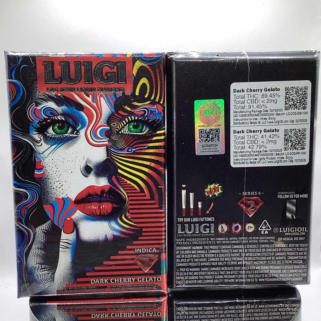 Dark Cherry Gelato Luigi Disposables offer a rich and indulgent flavor profile that blends sweet, fruity notes with creamy, dessert-like undertones. The inhale introduces a burst of ripe, tangy cherries with a touch of sweet berry, immediately lifting the spirits and offering a wave of refreshing flavor. As the vapor moves through, creamy, vanilla-like Gelato notes combine with a subtle earthy base, creating a smooth and well-rounded experience. On the exhale, a gentle sweetness lingers, perfectly balancing the bold fruit flavors with a touch of creamy richness. Dark Cherry Gelato provides a balanced, euphoric high that promotes relaxation and mental clarity, making it an excellent choice for those looking to unwind and experience a blissful, calming effect.